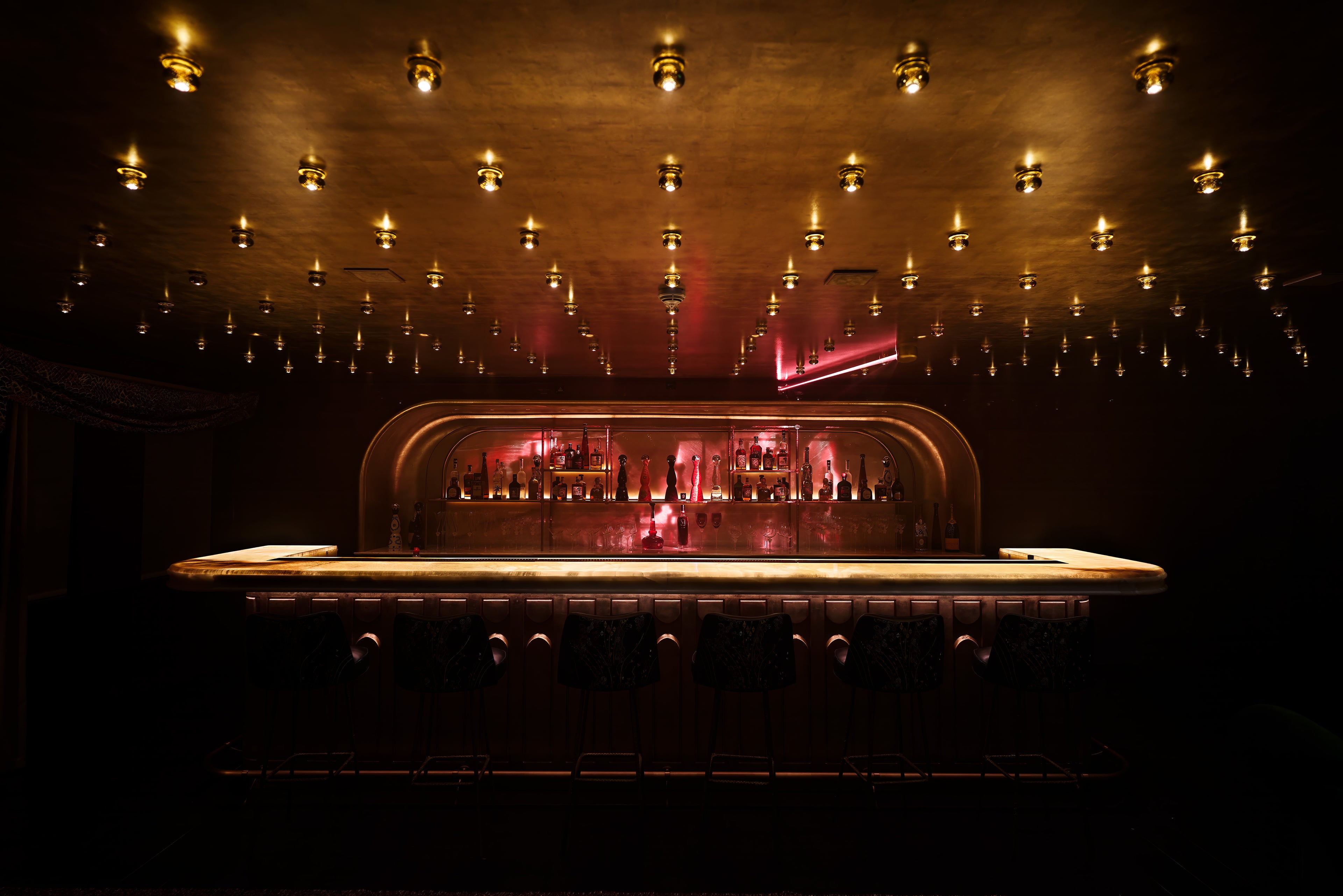 Under a shower of golden light, time stands still. A cocktail bar with a sinuous design, a soft atmosphere, and the magnetic charm of a London underground that never sleeps. Where the architecture of light becomes emotion.